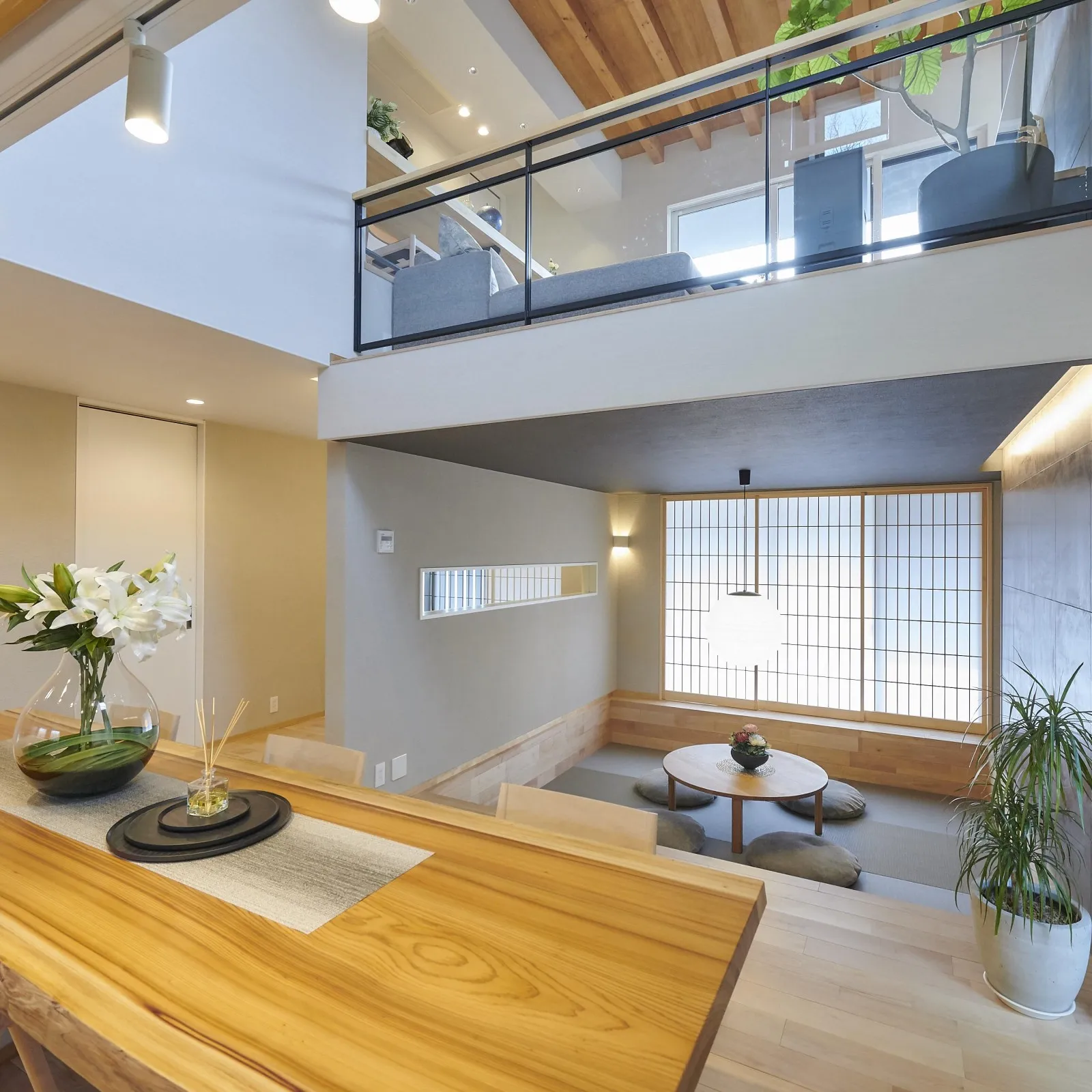 全体を和モダンに統一するもよし、シンプルモダンの外装で内装の一部に和の要素を取り入れるもよし、お客様の好みの“和モダン”をご提案します。